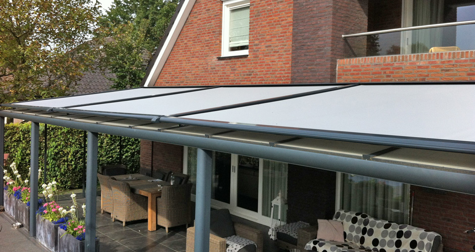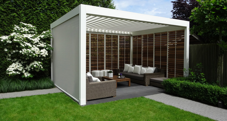 U kunt uw overkappingen ook uitvoeren met lamellendaken. Met dit systeem heeft u maximale controle over de hoeveelheid licht onder de overkapping. De lamellen kunnen roteren en zijn eenvoudig te bedienen door middel van een knop op de afstandsbediening. Als u de lamellen helemaal zijn gesloten geven deze een waterdichte bescherming tegen een normale regenbui waarbij regenwater perfect afgewaterd wordt via de onzichtbare ingebouwde regengoten.